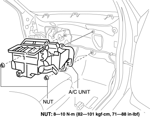 10. Remove the nut, then remove the A/C unit. Do not allow compressor oil to spill.