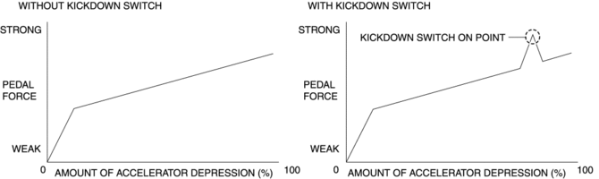 A load can be felt while the accelerator pedal is being depressed and when it is further depressed the kickdown switch turns on.