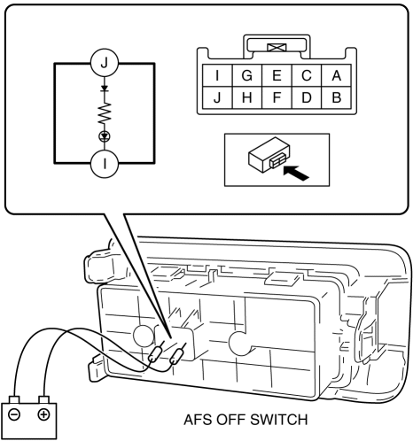 4. Apply battery positive voltage to AFS OFF switch terminal J, and connect terminal I to ground.
