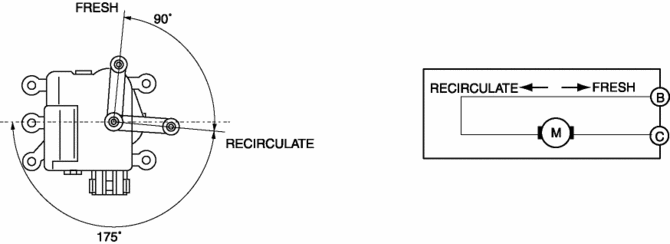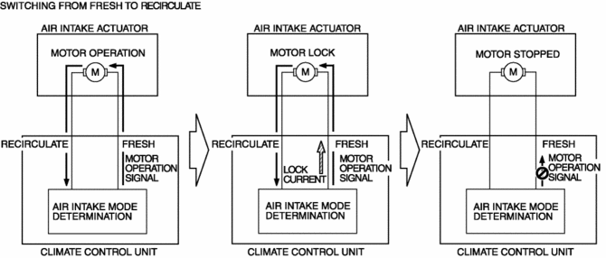 2. When the air intake actuator moves to FRESH or REC, the motor locks.