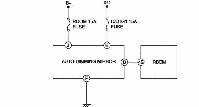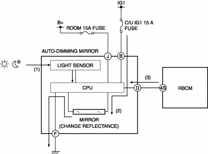 However, if it receives a reverse signal from the rear body control module (RBCM) (3), the reflection rate of the mirror is fixed at 70% or more.