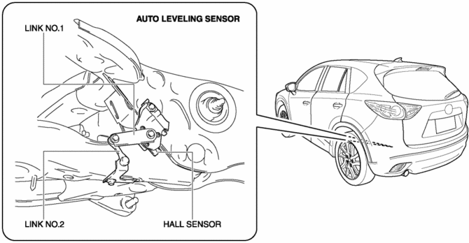 1. If the rear cross member slumps under a load and passengers, the auto leveling sensor link changes.