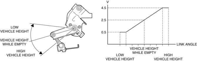 If the voltage cannot be verified as indicated in the graph, replace the auto leveling sensor.