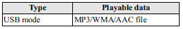 If the message “USB Error” is displayed, it indicates that there is no playable file in the USB memory or there is an error in the USB memory. Verify that the content recorded in the USB memory has MP3/ WMA/AAC files and re-connect correctly.