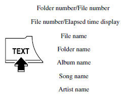 13 characters (Except file name) can be displayed at one time. To display the rest of the characters of a long title, press and hold the text button ( ). The display scrolls the next 13 characters. Press and hold the text button ( ) again after the last 13 characters have been displayed to return to the beginning of the title.