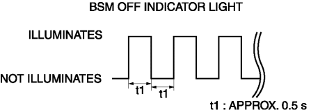The flash pattern of the BSM OFF indicator light is as shown in the figure.