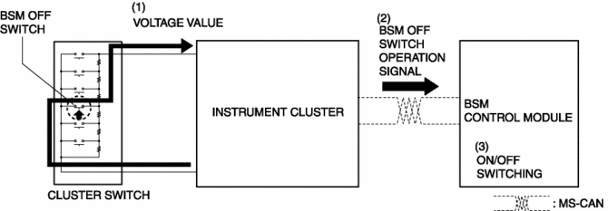 When the BSM OFF switch operates, the switch operation signal is sent to the instrument cluster.