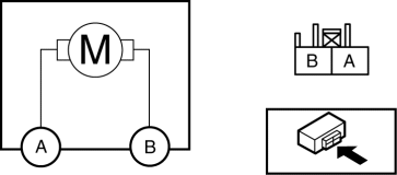 1. Connect battery positive voltage to blower motor terminal B, connect terminal A to ground, and then verify its operation.