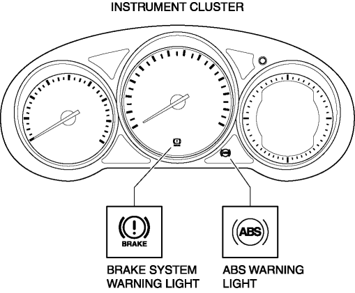 The brake system/ABS warning light is built into the instrument cluster. If a malfunction is detected in the system with the parking brake released, the warning light illuminates to notify the driver.