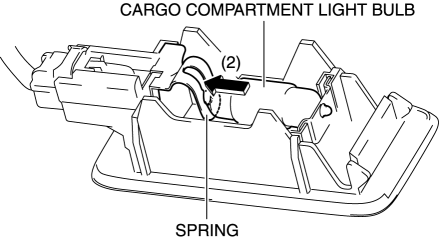 3. Press the cargo compartment light spring in the direction of the arrow (2) shown in the figure and detach it and the cargo compartment light bulb.