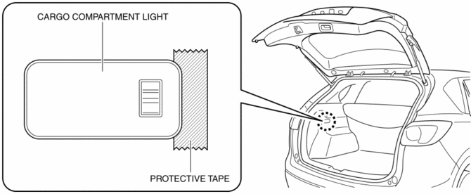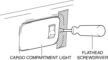 If a flathead screwdriver is inserted into the gap between the cargo compartment light and trunk side trim, the trunk side trim could interfere with the flathead screwdriver and be damaged. When removing the cargo compartment light from the trunk side trim, perform the procedure after affixing protective tape to the trunk side trim.