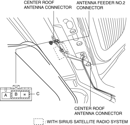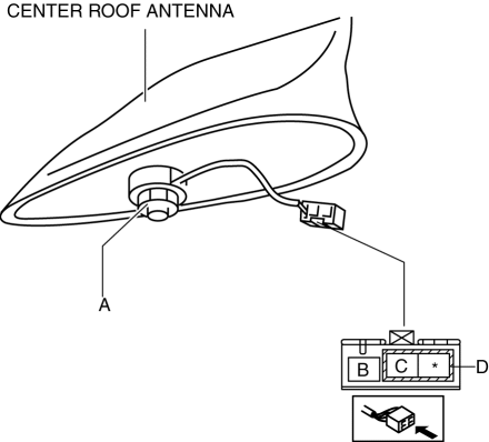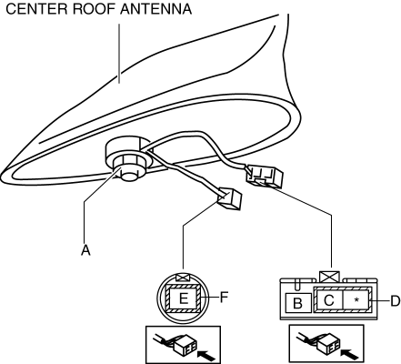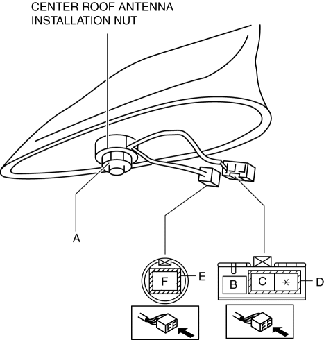 3. Verify that there is no continuity between center roof antenna sections A and B and E (with AM/FM/SIRIUS type only)