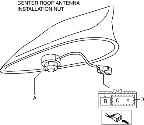 If the continuity is not as indicated in the table, verify the installation condition of the center roof antenna installation nut.