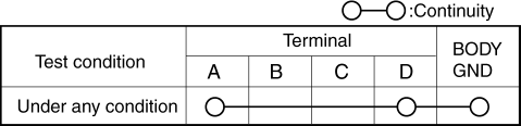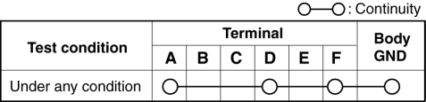 5. Verify that the continuity between the center roof antenna terminals is as indicated in the table.