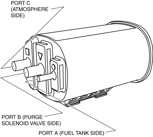 Do not apply a pressure 20 kPa {150 mmHg, 5.91 inHg} or more to the charcoal canister for 1 min. or more. Doing so will damage the charcoal canister.