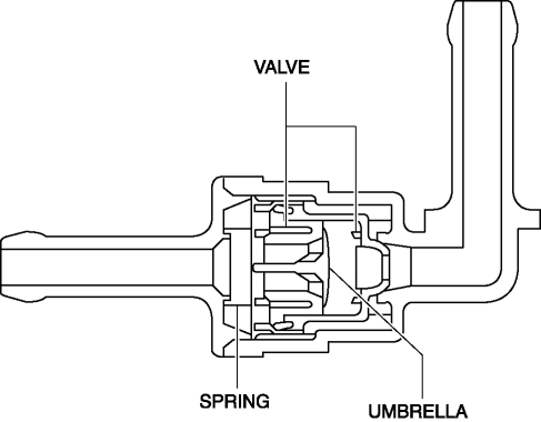 The valve moves in response to the difference in air pressure between the fuel tank side and the atmospheric side, thereby changing the path of airflow.