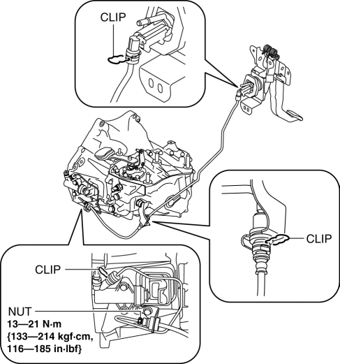9. Pull each engagement of the clutch reserve hose and clutch pipe and hose No.1 and 2, verify that they are engaged, and then press all of them again.