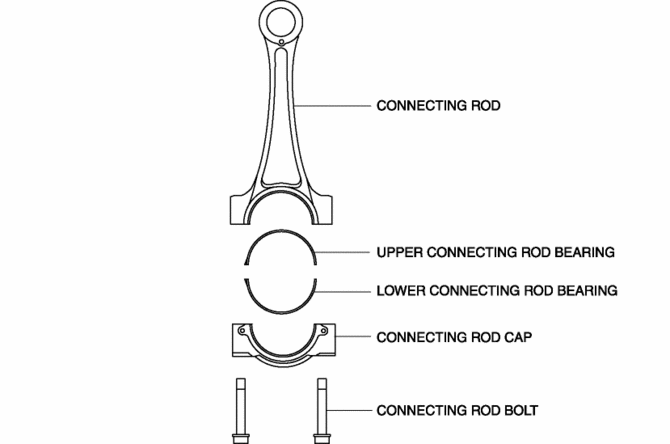 The connecting rod transmits the reciprocating movement of the piston to the crankshaft by engaging the piston pin and crank pin.