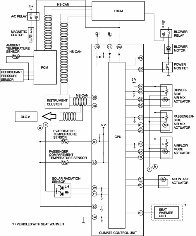 MS-CAN for communication between the instrument cluster and climate control unit adopted.