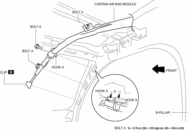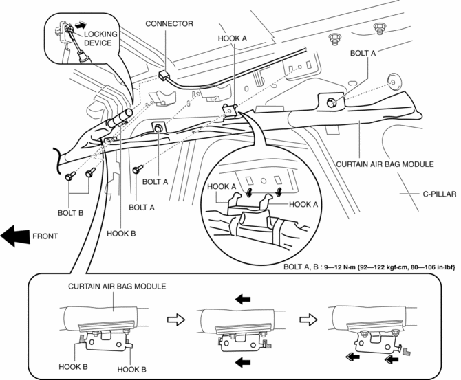 Curtain Air Bag Module [Standard Deployment Control System]Air Bag Module And Pre Tensioner Seat Belt Disposal Procedures [Two Step Deployment
