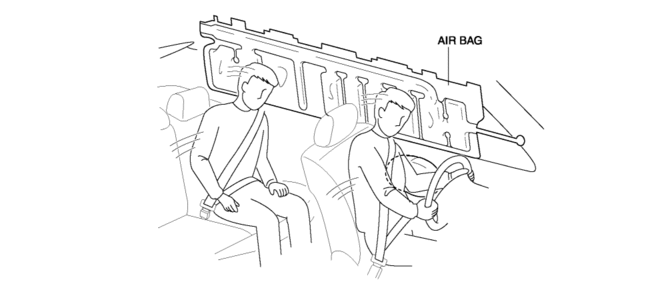 4. When a curtain air bag operates (deploys), the A-pillar trim and headliner are spread apart by the compressed gas generated from the inflator, inflating the air bag.