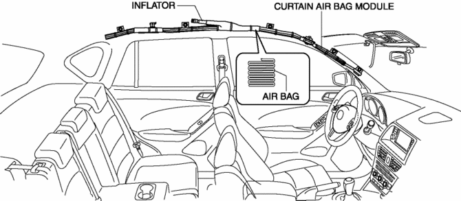 The curtain air bag module operates (deploys) the air bag by activating the internal inflator.