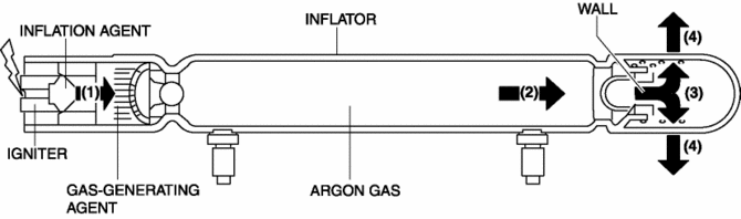 1. When an operation (deployment) signal is received from the SAS control module, the igniter built into the inflator generates heat and ignites the ignition agent.