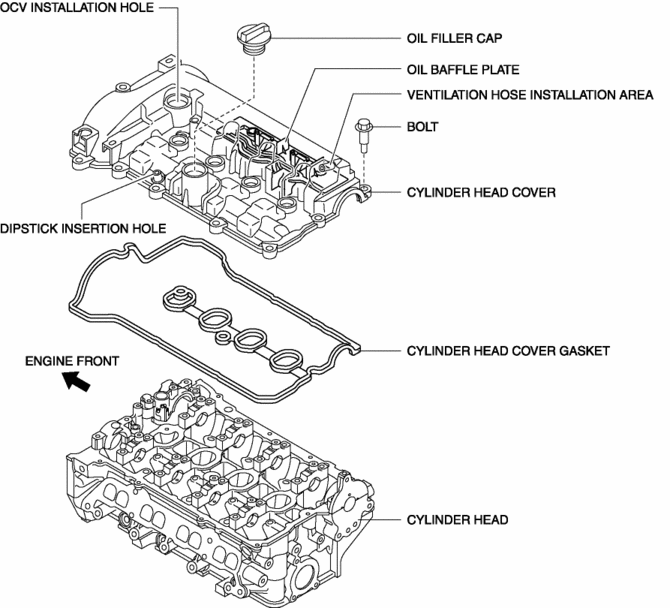 The cylinder head cover prevents foreign material penetration and engine oil spatter.