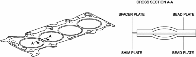 The cylinder head gasket is installed between the cylinder head and cylinder block to prevent leakage of air-fuel mixture, combustion gas, engine oil, and engine coolant.