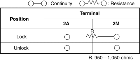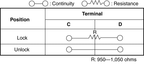 If the continuity is not as indicated in the table, replace the door lock switch.