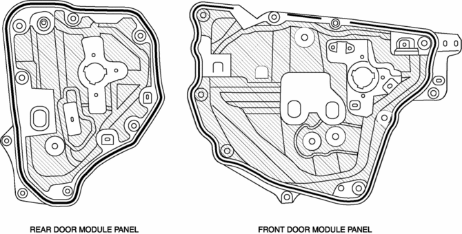 Styrofoam is applied to the door module panels (shaded areas) during manufacture.