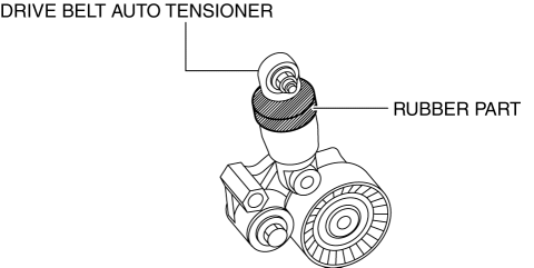 If the rubber part of the drive belt auto tensioner is damaged by a screwdriver or other tool, oil in the hydraulic pressure unit could leak and the tensioner may not operate normally. Be careful not to damage the rubber part of the drive belt auto tensioner.
