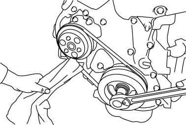 2. Apply a clean cloth to the water pump drive belt as shown in the figure.