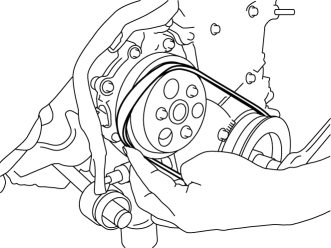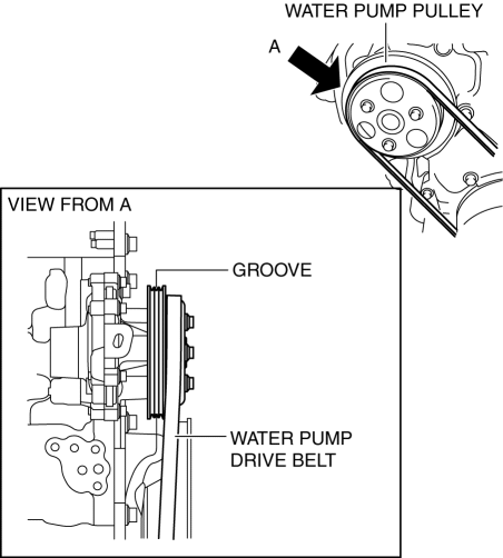 1. Set one side of the water pump drive belt into the groove of the crankshaft pulley.