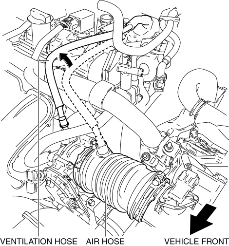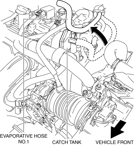 4. Pull out the evaporative hose No.1 from the catch tank and set it aside.