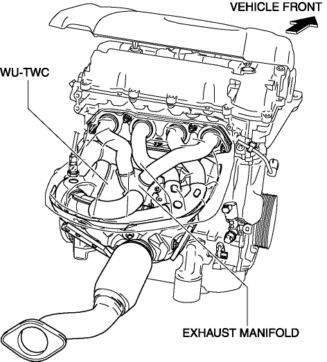 The exhaust manifold is installed to the rear of the engine. In addition, the catalytic converter (WU-TWC) is integrated (WU-TWC).