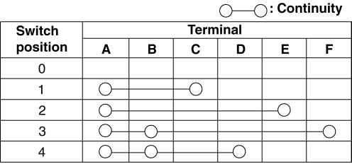 4. Verify that the continuity between the fan switch terminals as indicated in the table.