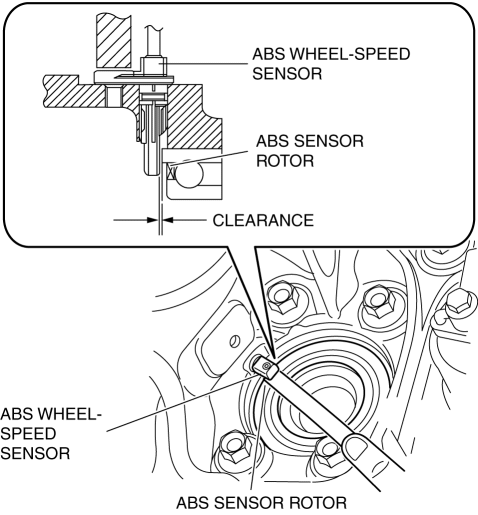 1. Measure the gap between the ABS sensor rotor and ABS wheel-speed sensor using a feeler gauge.