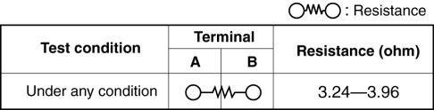 4. Verify that the resistance between the front center speaker terminals is as indicated in the table.