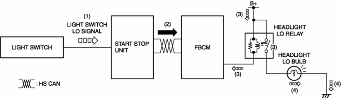 When the light switch is operated to the HEAD position, a light switch LO signal is input to the start stop unit.