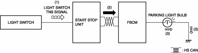 1. When the light switch is operated to the TNS position, a light switch TNS signal is input to the start stop unit.