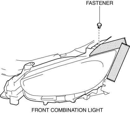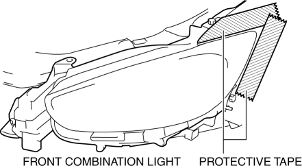 When the front combination light is removed from the body, perform the procedure after affixing protective tape to the body. Otherwise, the body could interfere with the front combination light and cause scratching or damage to the body.