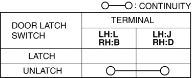 If not as indicated in the table, replace the front door latch and lock actuator.