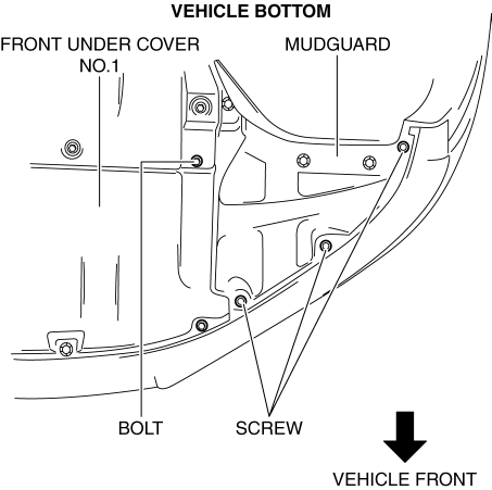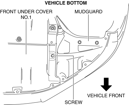 3. Pull up the front under cover No.1 and remove the mudguard screw shown in the figure.