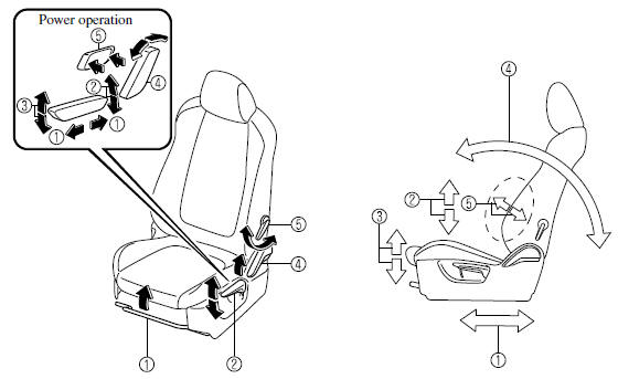 (Power Seat) To adjust the front height of the seat bottom, raise or lower the front of the slide lifter switch.
