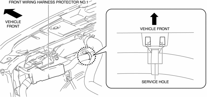 5. Pull out front wiring harness protector No.2 from the stud bolt and set it aside as shown in the figure.