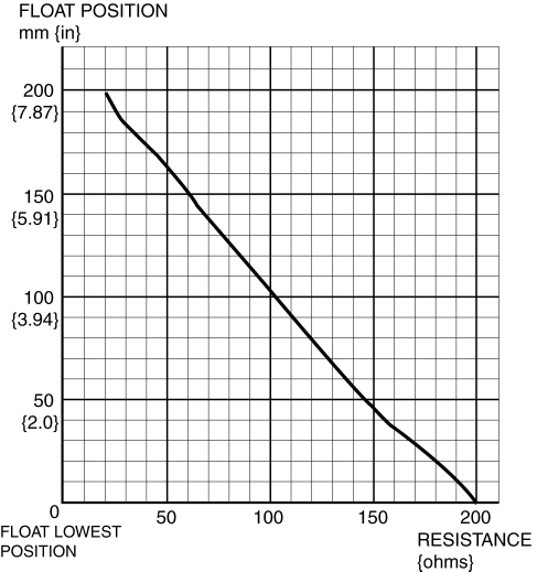 If not as indicated in the table, replace the fuel gauge sender unit (sub).