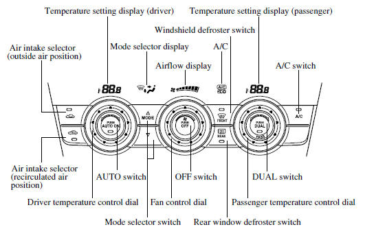 • Mode selector switch • Fan control dial • Windshield defroster switch The functions for dials and switches other than those operated in the above continue to operate in auto control.