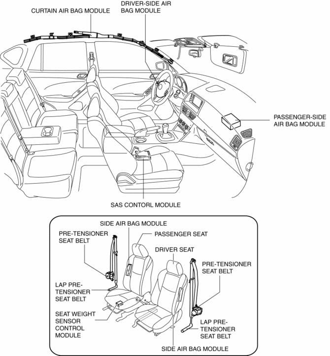 Do not install any radio set-related devices in the area where the air bag module deploys to prevent a secondary accident if the air bag were to deploy.