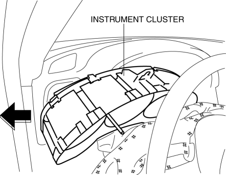 8. Rotate the instrument cluster in the direction of the arrow shown in the figure.